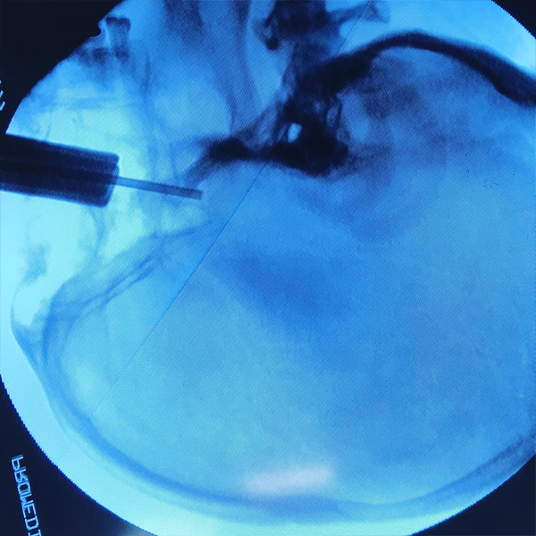 Descompresión de la fosa posterior, se extrae una pequeña sección de hueso de la parte posterior del cráneo, aliviando la presión al darle más espacio al cerebro.